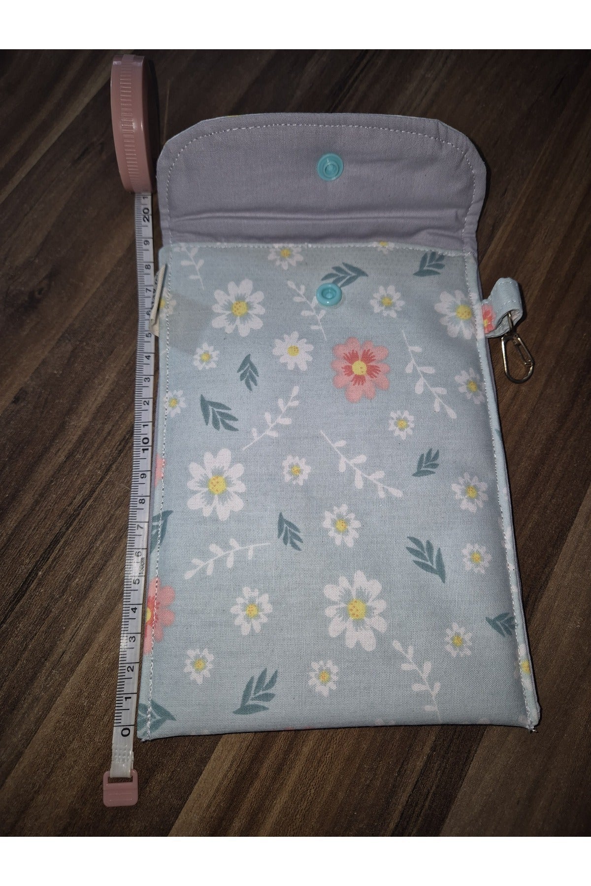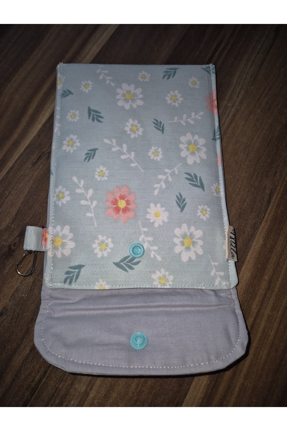 Poplin kumaş kullanılmıştır.; İçi astarlıdır.; 18x12 cm ölçülerindedir.; Çanta içinde ve dışında asılarak kullanılabilir.;