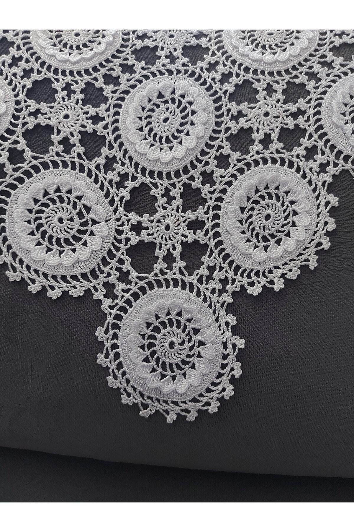 Bobin İp Kullanılmıştır. ; 1 Adet Dantel Bohça Kenarından Oluşmaktadır. ; Üçgen Şeklindedir. 70x50x50 Kenar Ölçülerine Sahiptir. ;