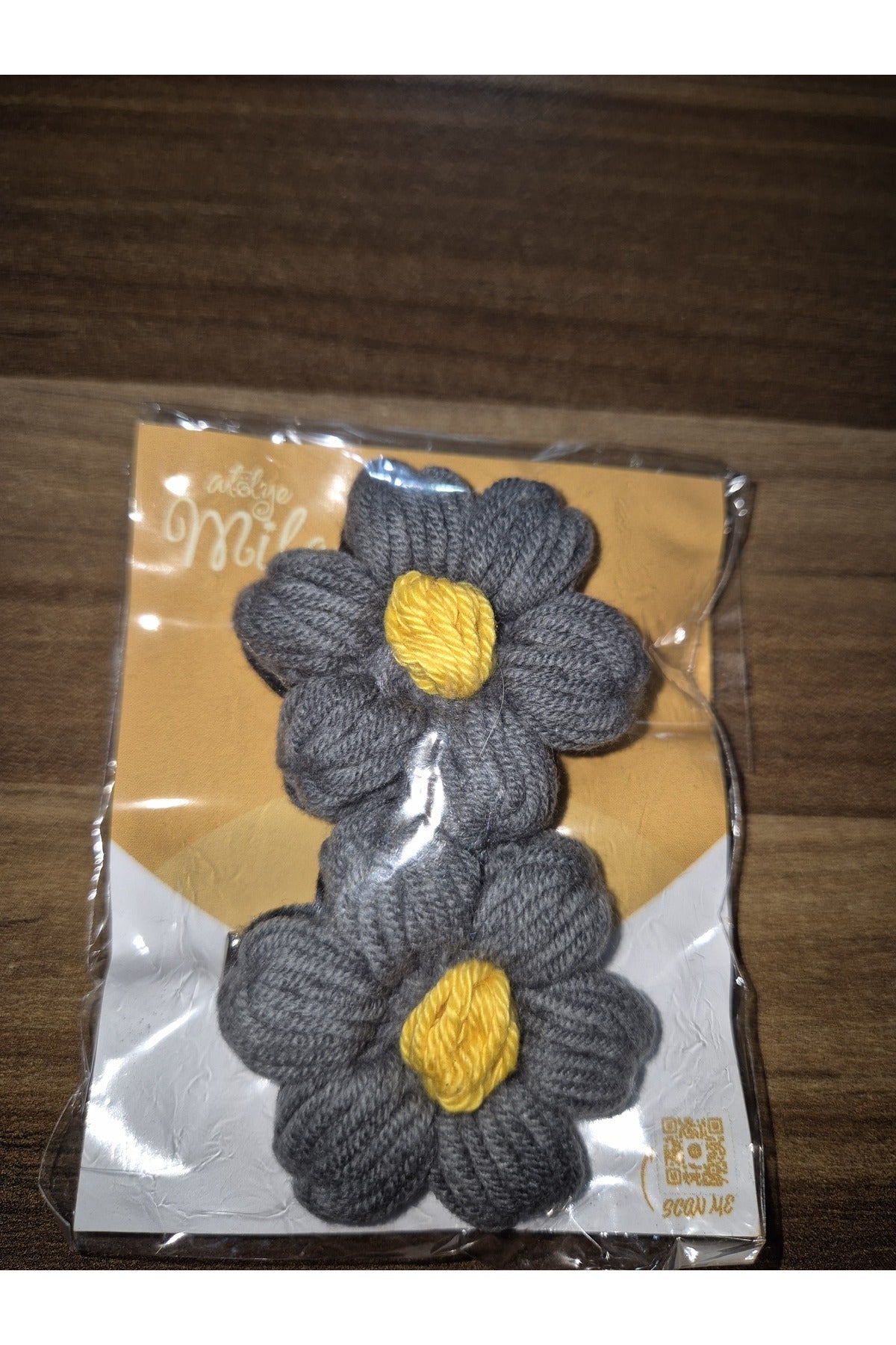 GRİ SARI PAPATYA ÖRGÜ TOKA