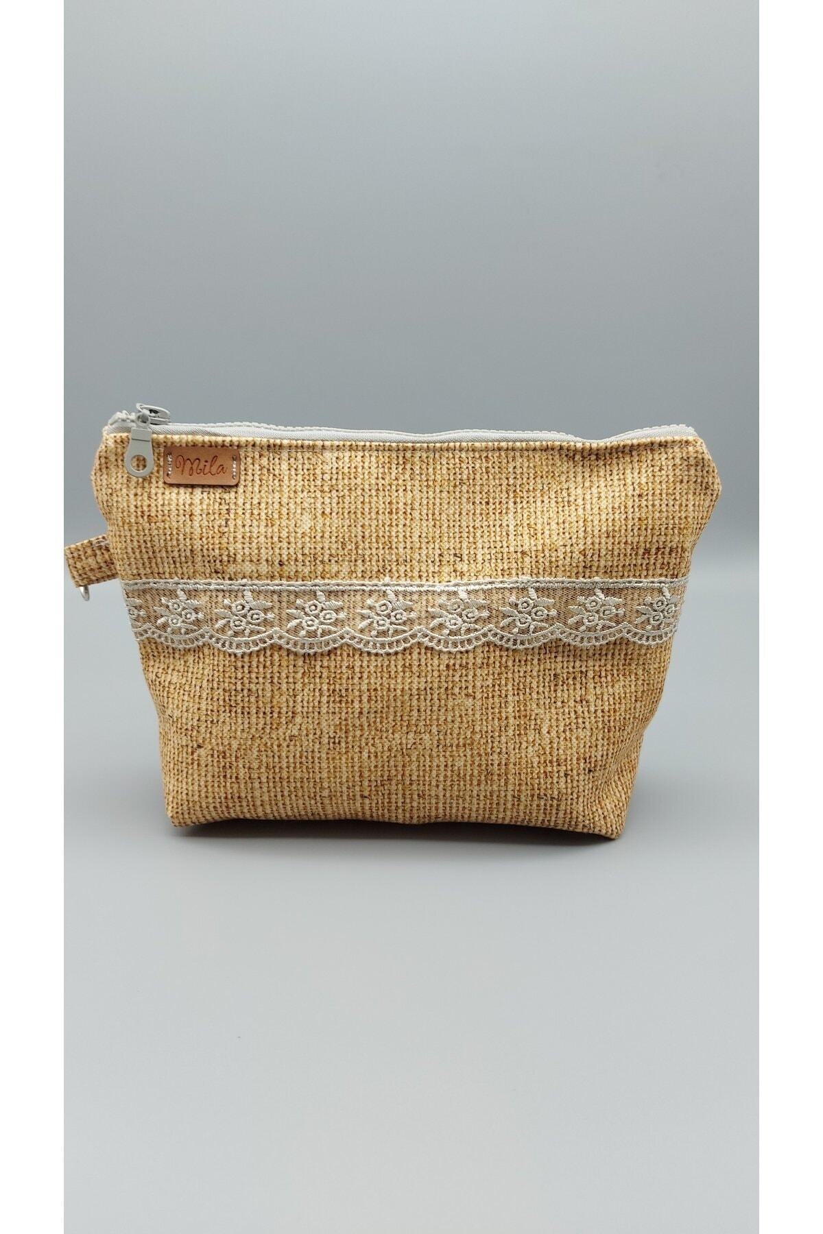 Jüt Desenli Sarı Makyaj Çantası (güpürlü)
