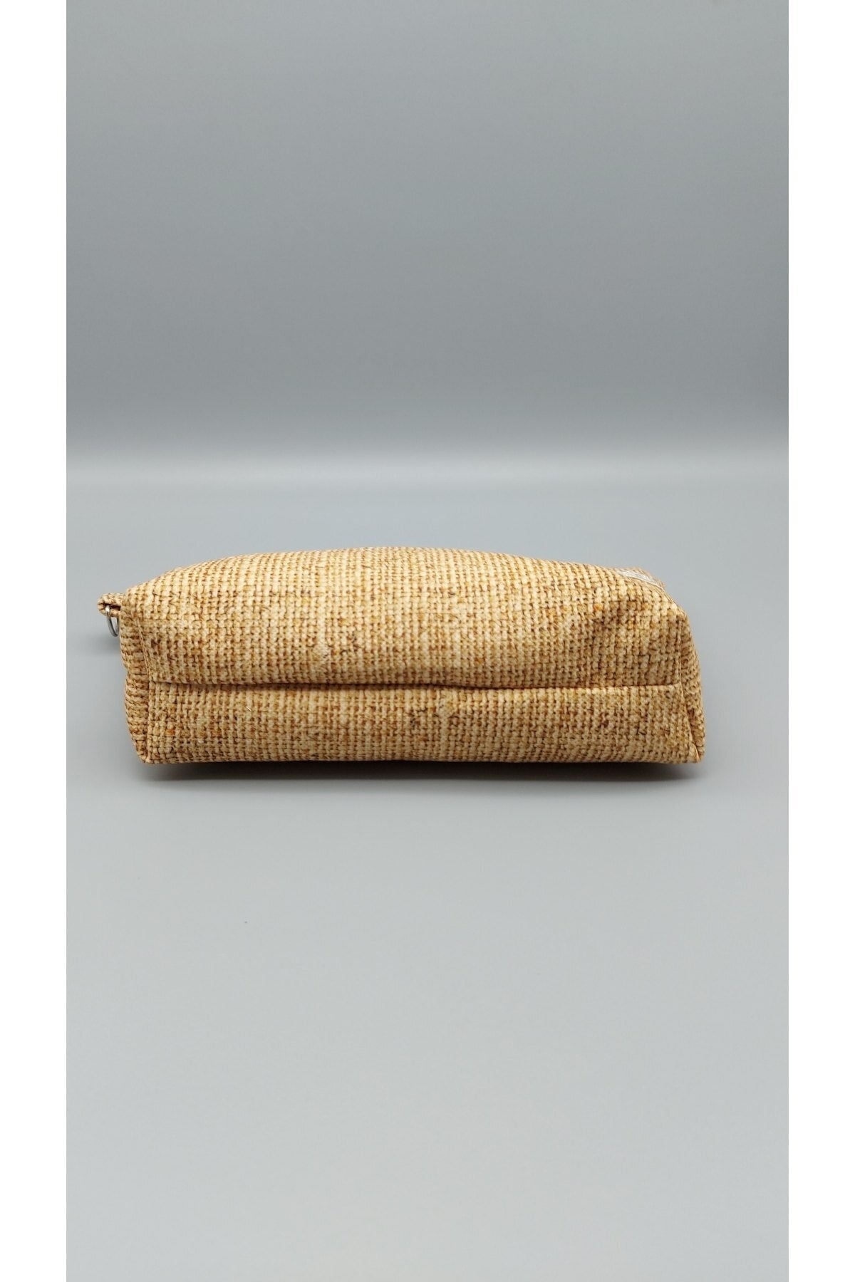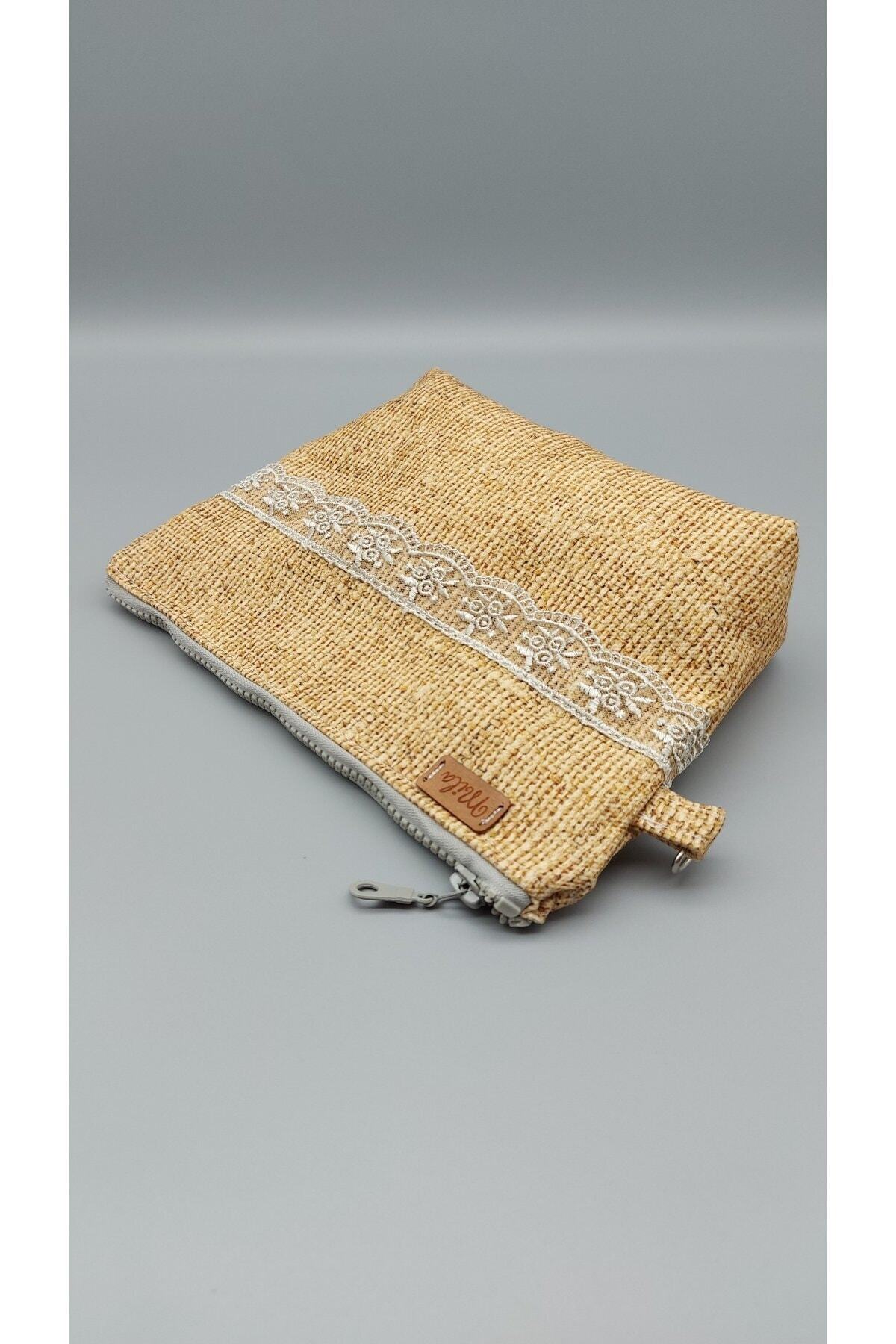 Doğal jüt materyali sayesinde dayanıklı ve uzun ömürlü kullanım sunar; Sarı renkli ve güpürlü tasarımıyla makyaj çantanızda şıklığı ve zarafeti bir arada yaşatır; Jüt malzemesi, hafifliğiyle taşıması kolay ve taşıma sırasında rahatlık sağlar; Doğal dokusuyla dikkat çeken bu makyaj çantası, günlük kullanım için idealdir;