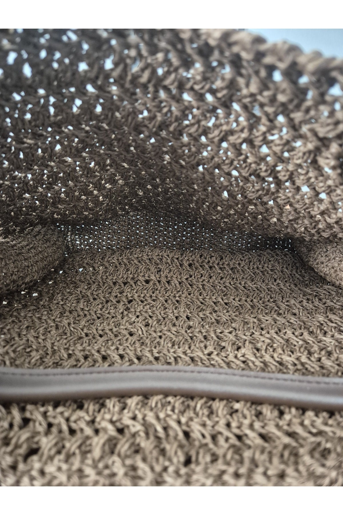 Kahverengi el örgüsü kağıt ip büyük omuz çantası