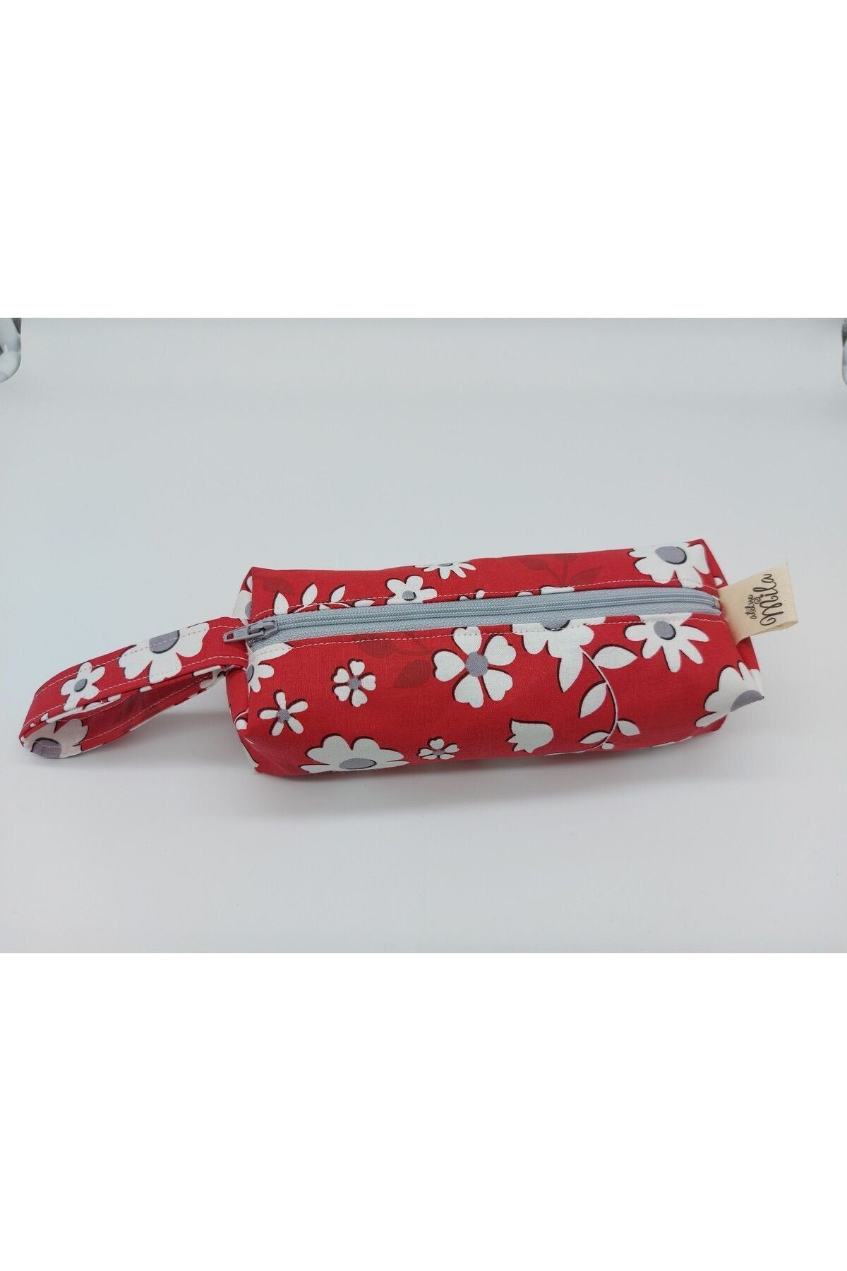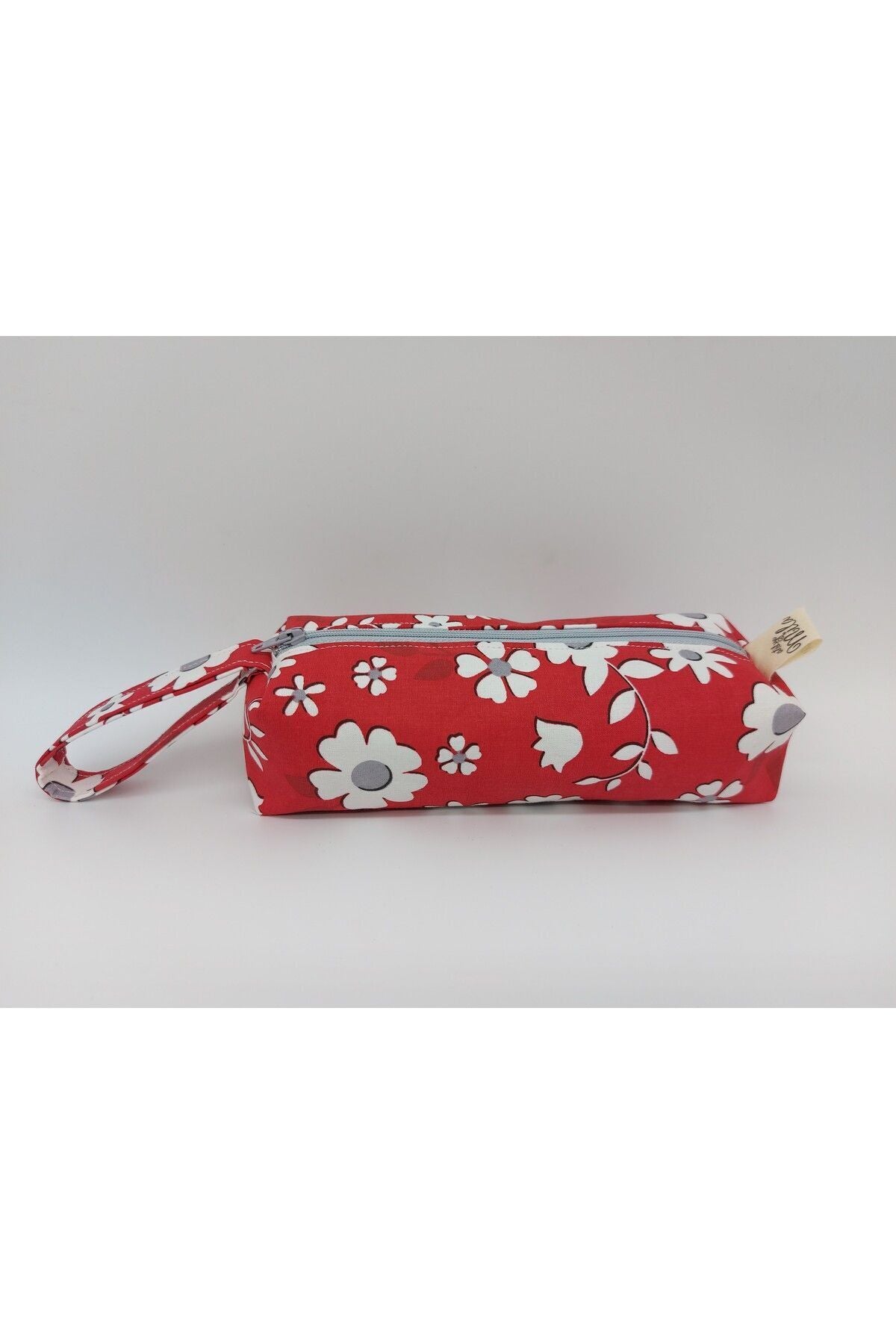 KIrmızı Beyaz Çiçekli Kalem Kutusu