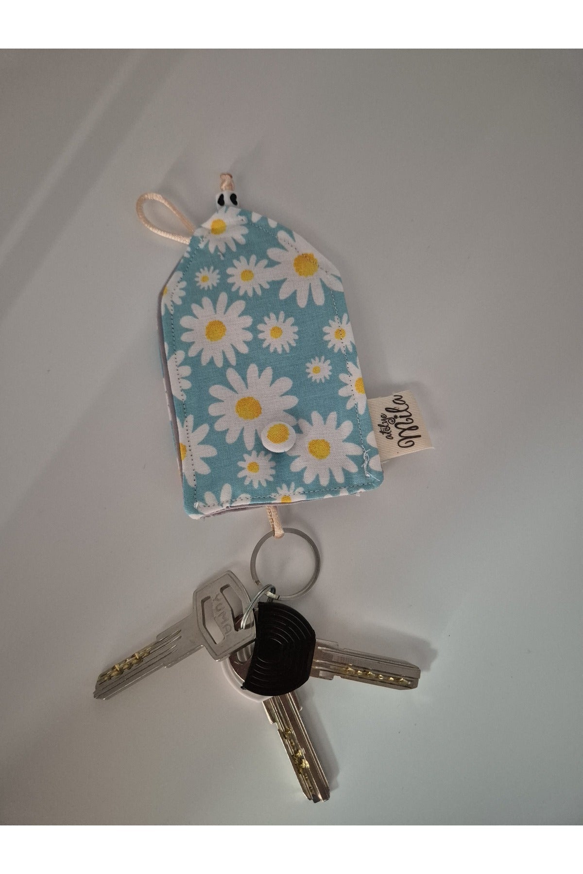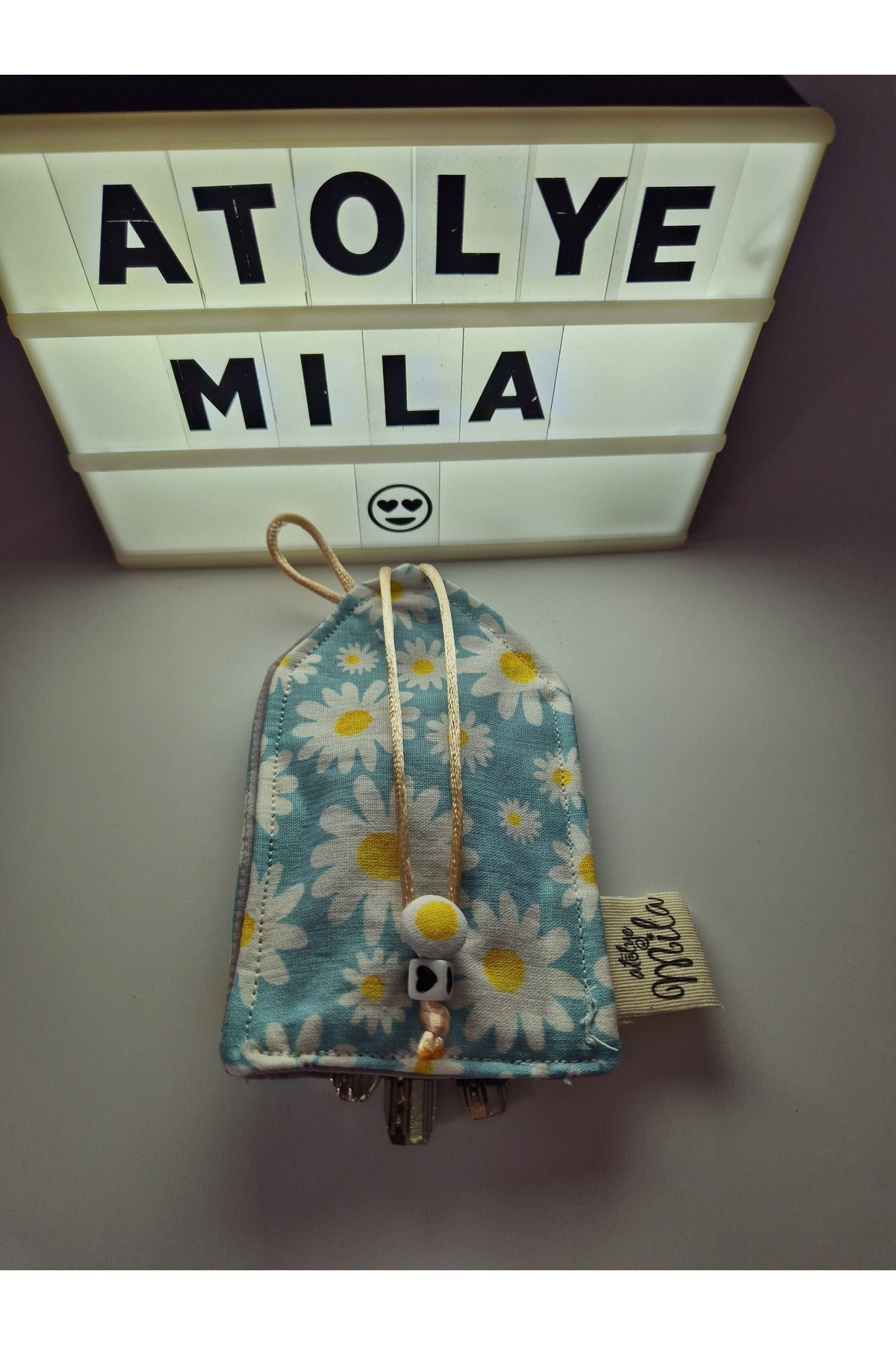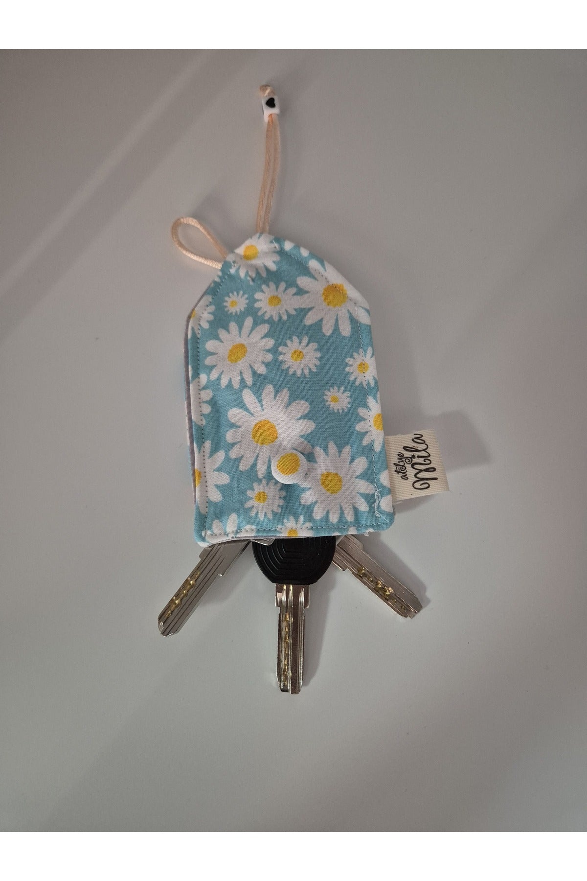 Mavi Papatya Desenli Düzenleyici Kumaş Anahtarlık