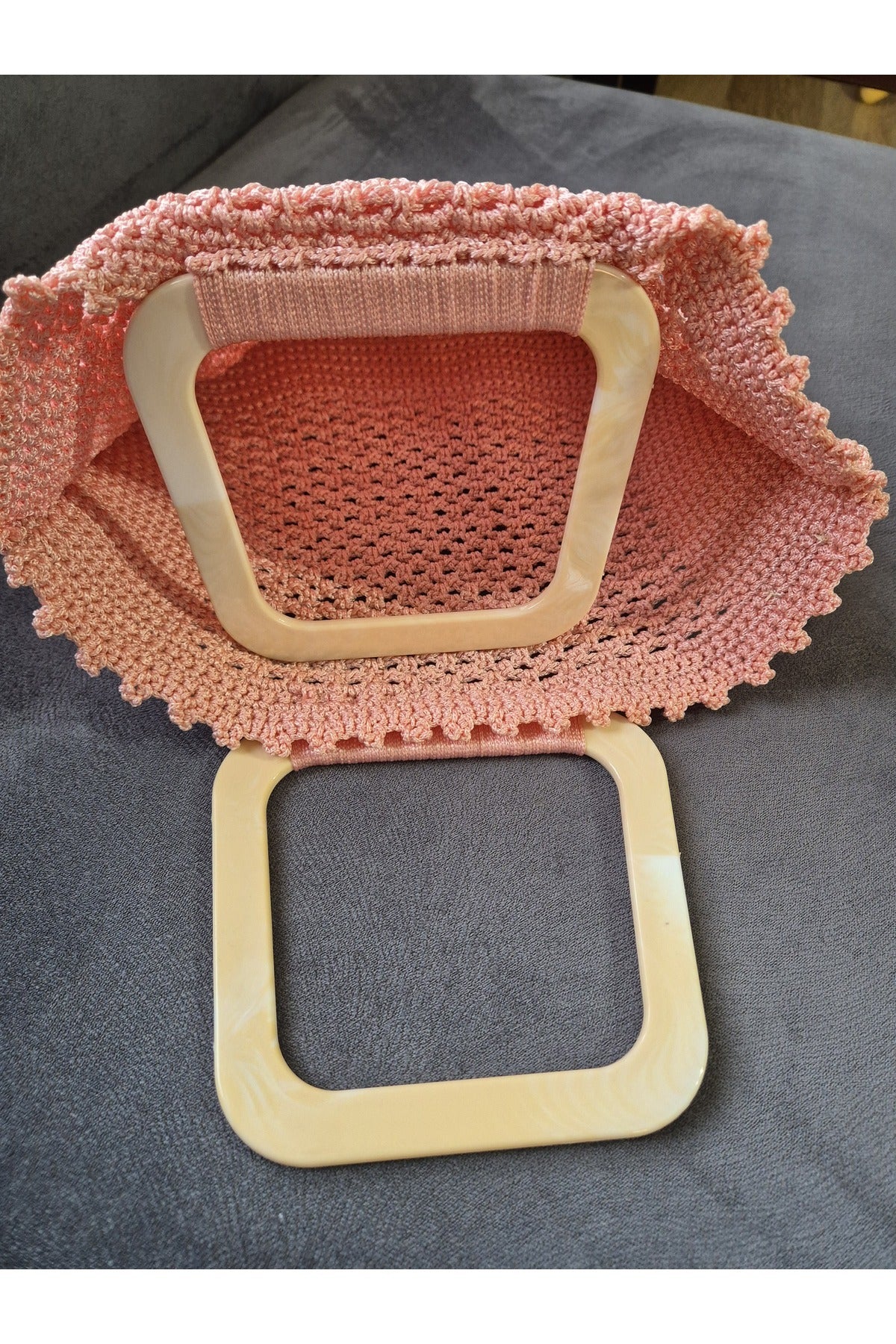 Makrome ip ile örülmüştür.; Ürünlerimiz el örgüsüdür.; Günlük kullanım için uygundur.; İçinde astar yoktur.; 33x22cm ölçülerindedir.;