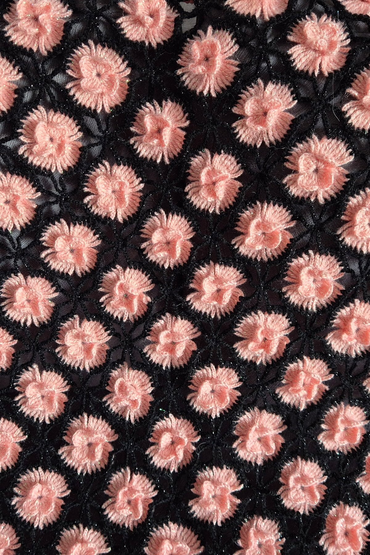 Pembe Pıtırcık Çiçekli Siyah Şal