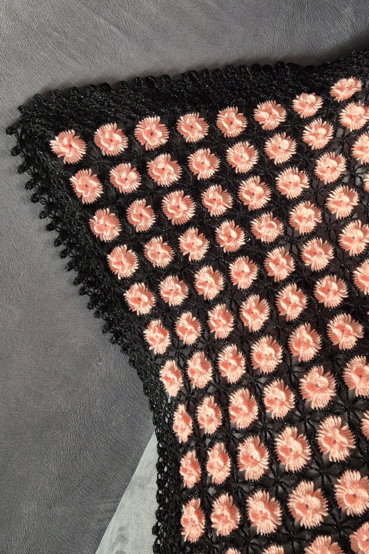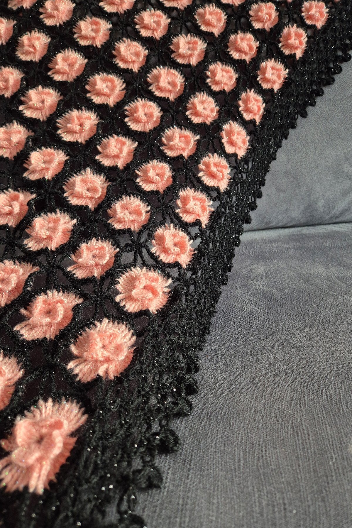 - Şal üçgen formunda örülmüştür.
