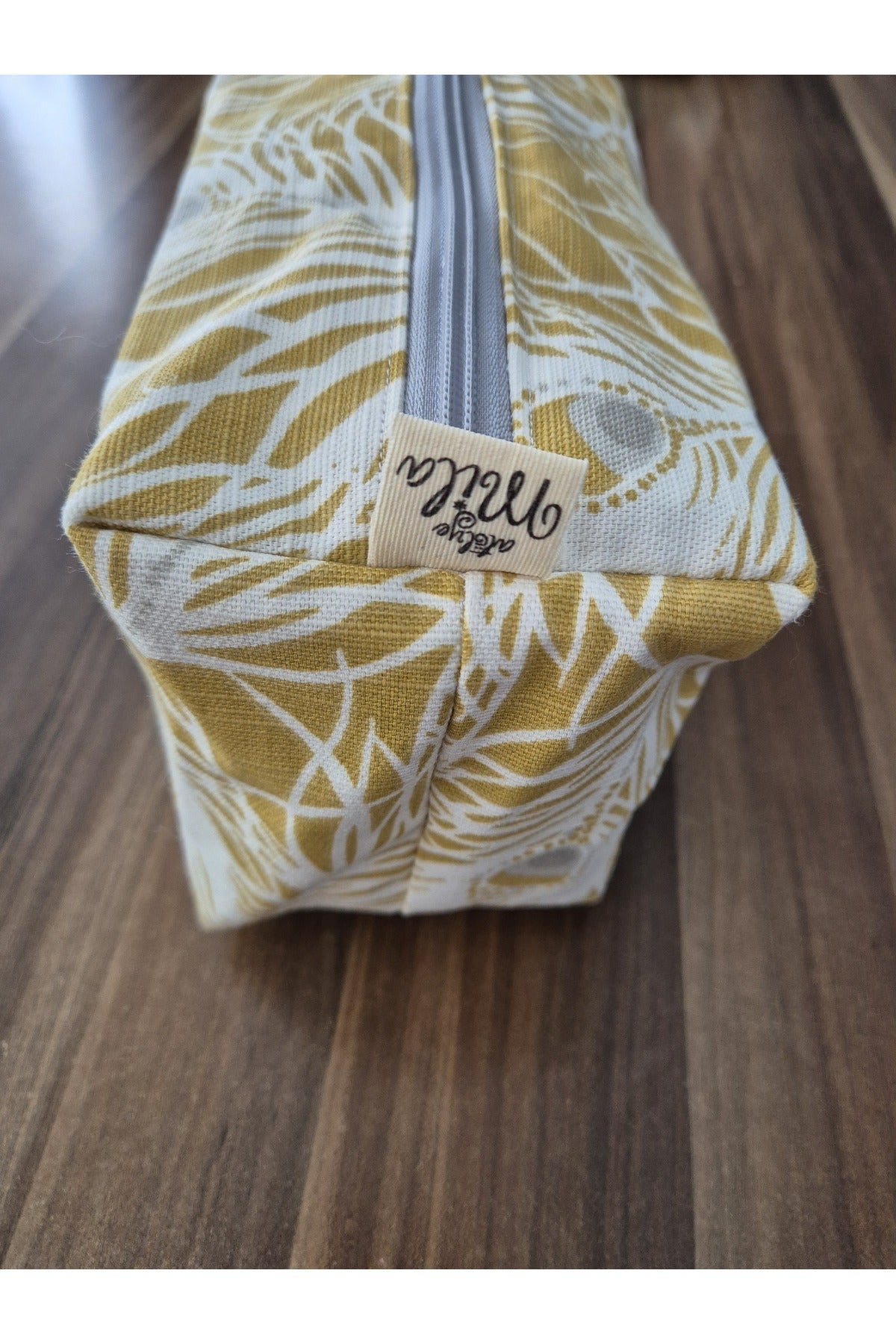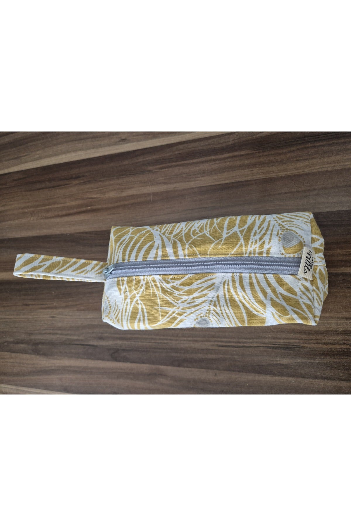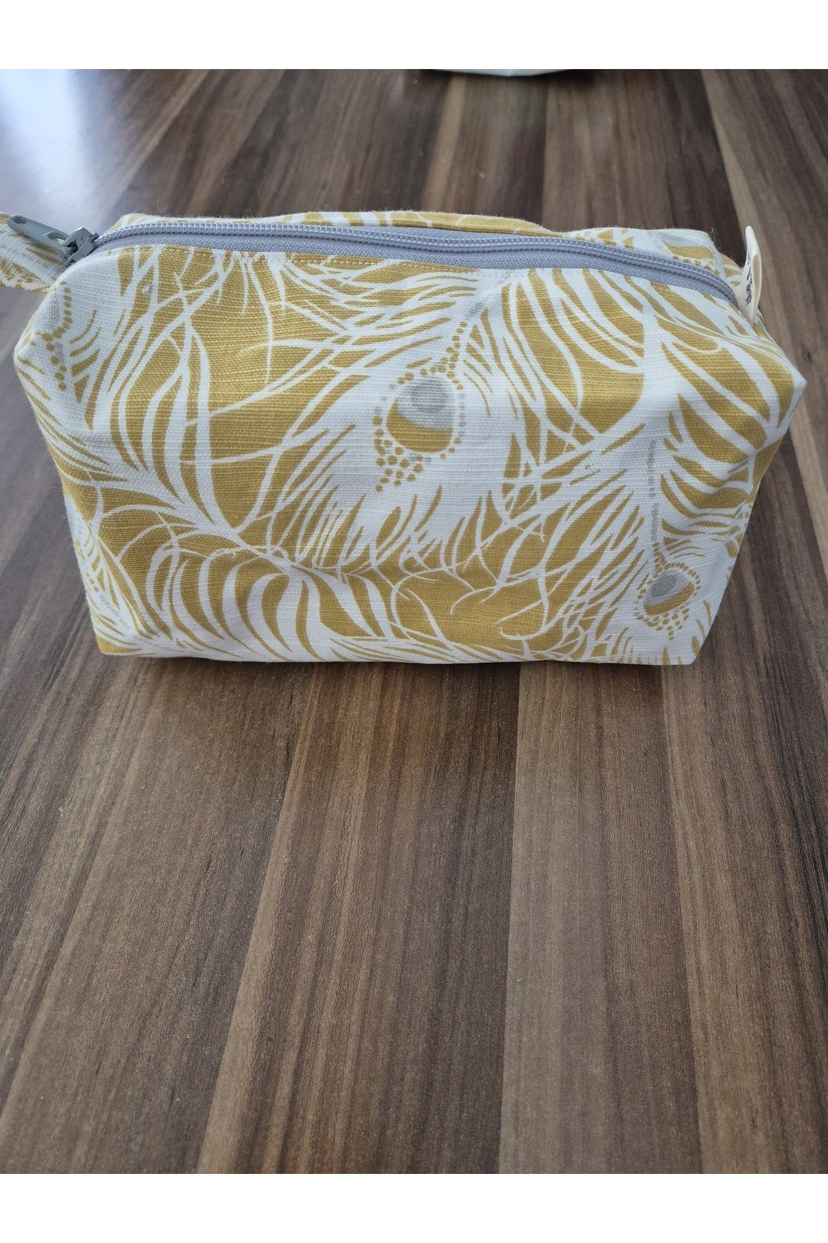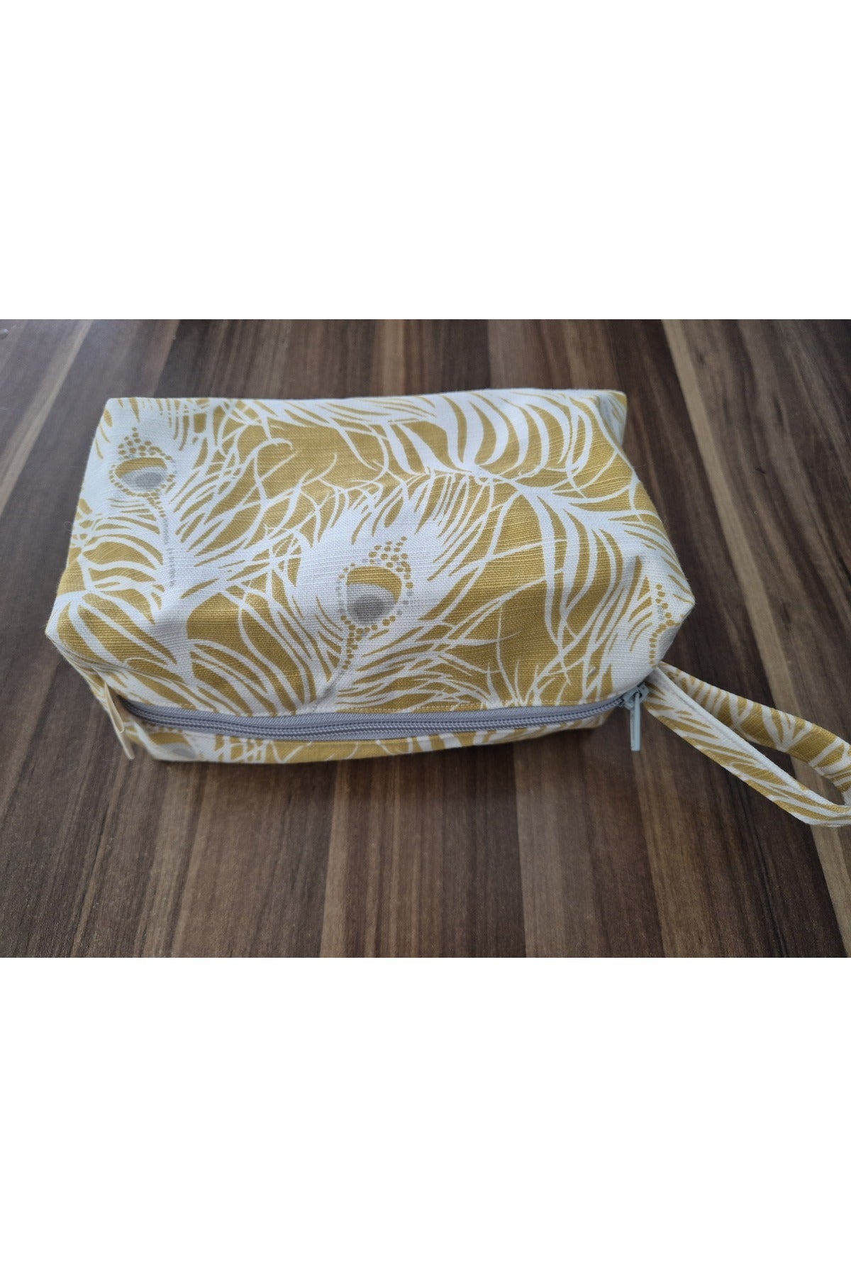 - Zarif sarı tüy deseniyle göz alıcı bir görünüm sunar.; - Kadın ve kız kullanıcılar için ideal, şık tasarımıyla dikkat çeker.; - Türkiye\'de üretilmiş olup yerel üretim kalitesini yansıtır.; - Genç koleksiyonuna ait bu makyaj çantası, dinamik tarzınıza eşlik eder.; - Tek parça halinde gelir; ekstra parçaya ihtiyaç duymadan kullanabilirsiniz.; - Canlı sarı rengi ile enerjinizi yansıtmanızı sağlar.; - Yetişkinlerin kullanımına uygun olarak tasarlanmıştır; her yaş grubundan kadının rahatlıkla tercih edebileceği bir üründür.; - Yüksek kaliteli tekstil materyali ile uzun süreli kullanım vaat eder.; - Orta boyutuyla gerekli tüm makyaj malzemelerinizi yanınızda taşımanız için idealdir.; - Deri kalitesine sahip olmayan yapısıyla hayvan dostu bir seçenektir.; - Elde yıkama talimatına uyarak kolayca temizlenebilir; böylece hijyenik kullanım sağlanır.; Poplin kumaş kullanılmıştır.; İçi astarlıdır.; 20x12x10 cm ölçülerindedir.; Çanta içinde ve dışında ayrı olarak kullanılabilir.; Rahat kullanım için uzun bir sapı vardır.; Günlük kullanım için uygundur.; Çocuklarınız eşyalarını ya da kendi kullanımınız için uygundur.; Valizlerinizde, yolculuklarınızda karışmasını istemdiğiniz eşyalarınızın düzeni için kullanabilirsiniz.