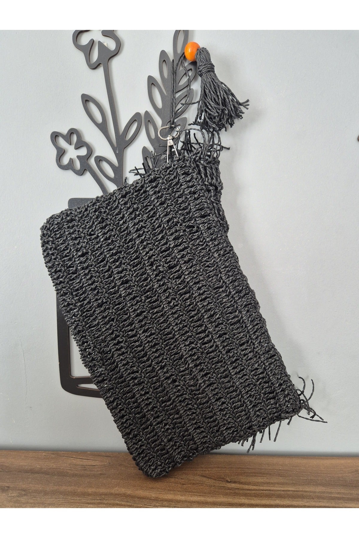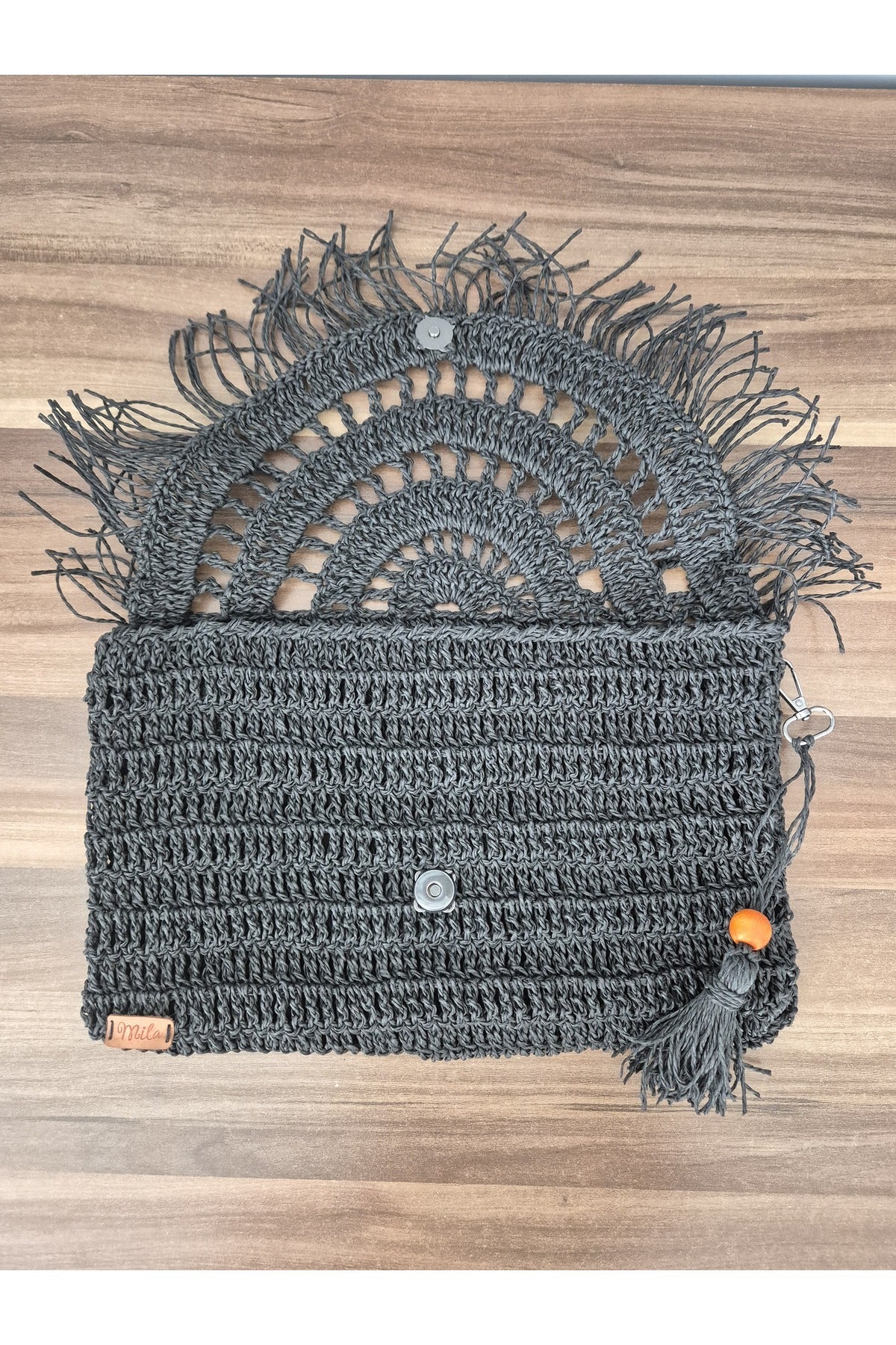 Siyak kağıt ip kullanılmıştır.; Ürünlerimiz el örgüsüdür.; İçi astarlı değildir.; Kapak kısmında manyetik metal çıtçıt kullanılmıştır.; Günlük kullanım için uygundur.; Genç ve yetişkin kadınların kullanımı için uygundur.; 32x20 cm ölçülerindedir.;
