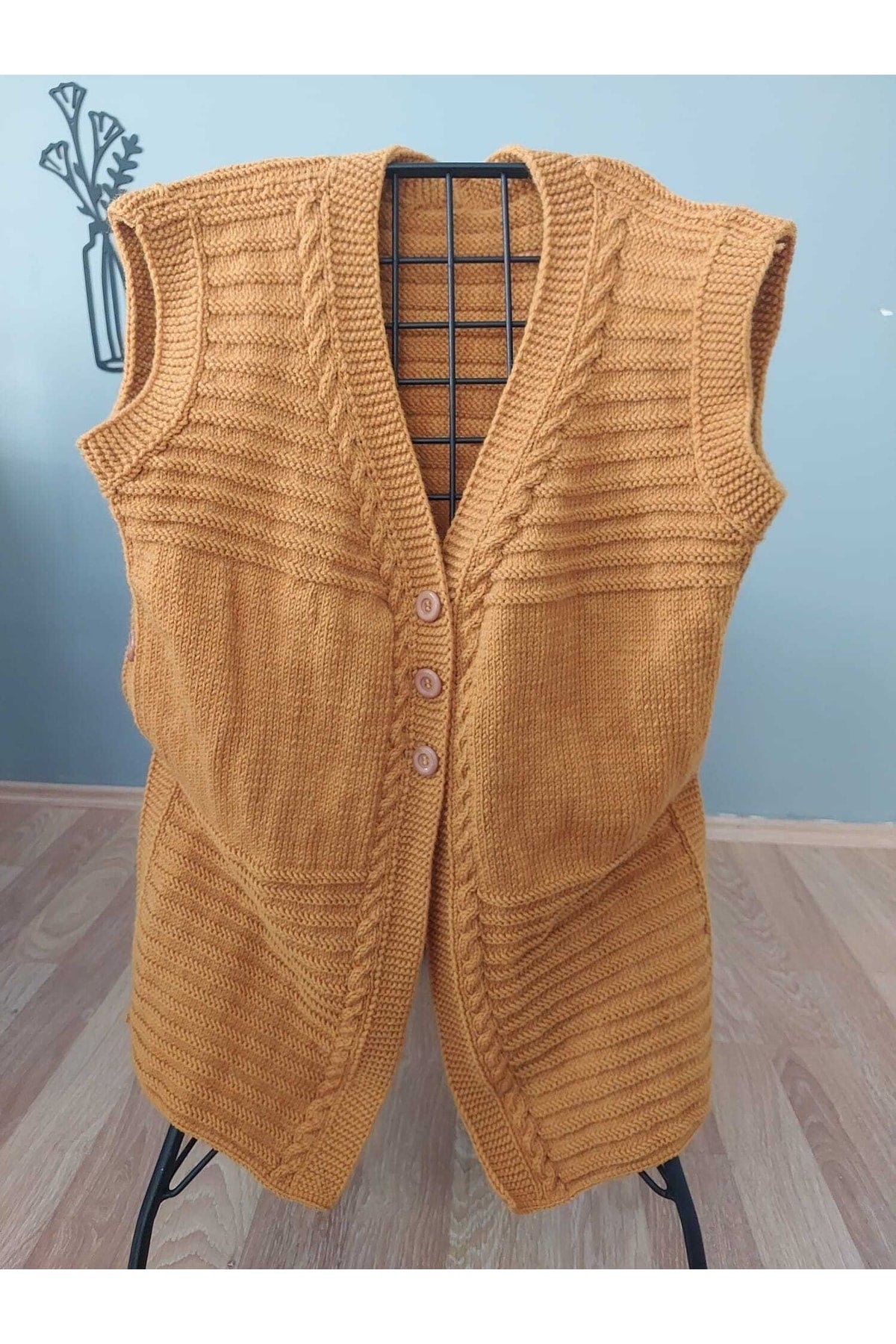 Tarçın Rengi Örgü Anne Yeleği