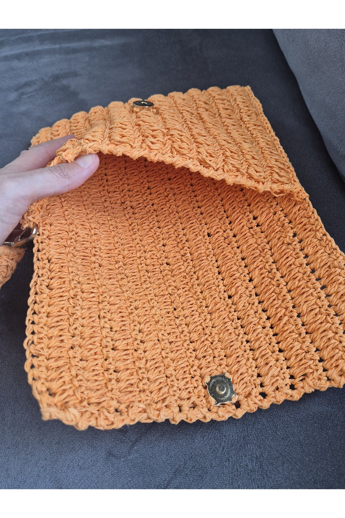 Yavru ağzı renkte kağıt ip ile yapılmıştır.; Ürünlerimiz el örgüsüdür.; Günlük kullanım için uygundur.; 24x20 cm ölçülerindedir.;