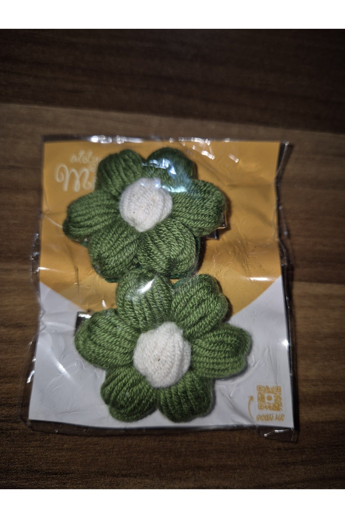 YEŞİL BEYAZ PAPATYA ÖRGÜ TOKA